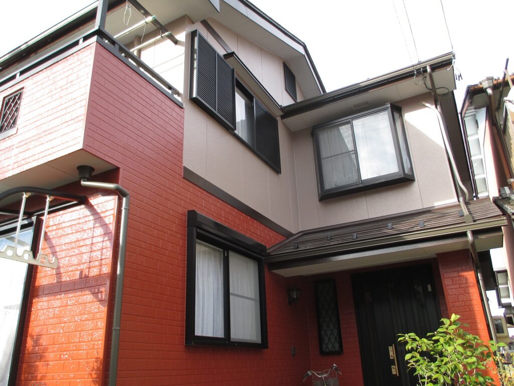 また、光沢感のある塗装で、明るく艶やかな外観になりご満足頂けたかと思います。「スーパームキコート」は、耐久性もよく紫外線に強い特徴があります。レンガ色×ベージュ が良く映える明るい印象の仕上がりに!