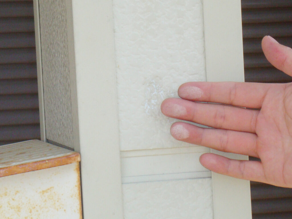 現場調査では外壁の色あせに加え、ヒビ割れ・シーリングの効果が切れたことによる壁の破損が見られました。