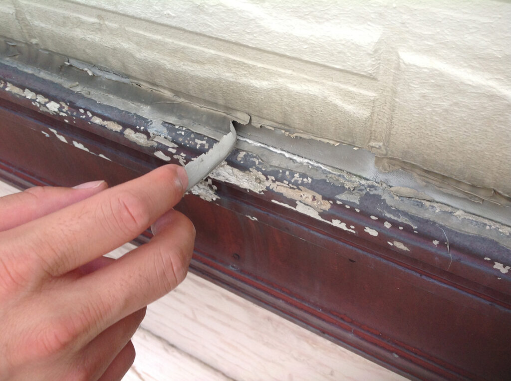 • 以前の工事では古いコーキングをはがさずコーキングを打ち直してあり、結果そのコーキングが劣化していました。