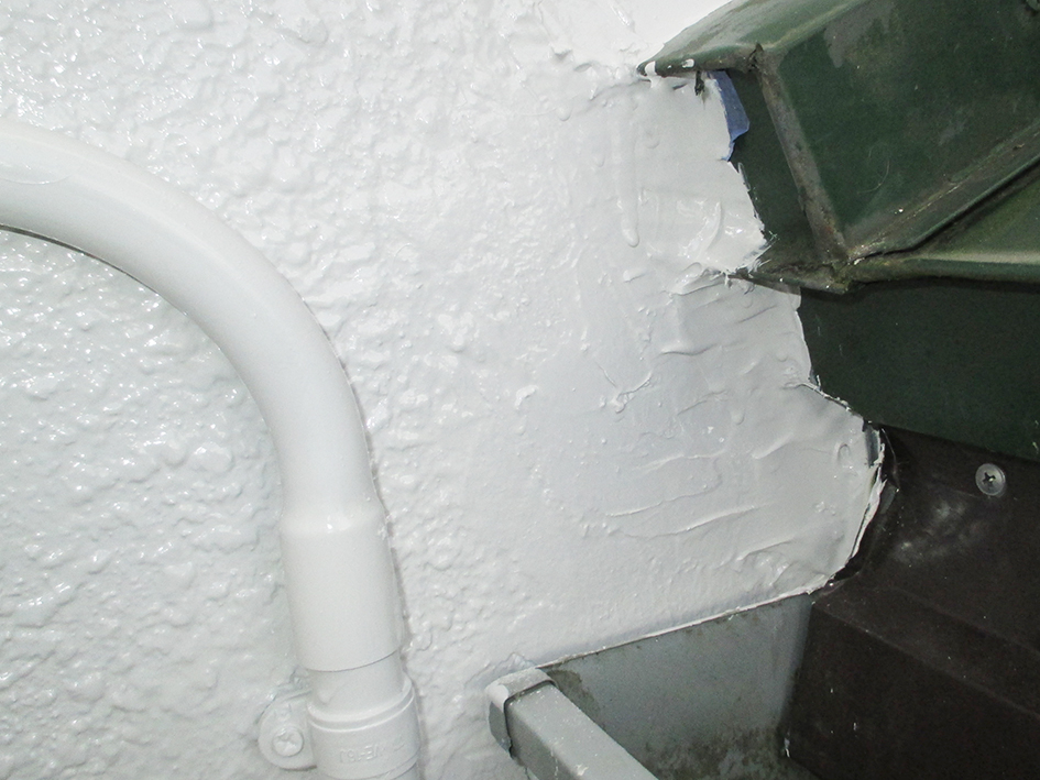 雨樋と外壁の接続部分や爆裂をおこしていた箇所の補修も一緒にさせて頂いたため、今まで雨だれ跡がついていた部分も水が垂れないようになりました。