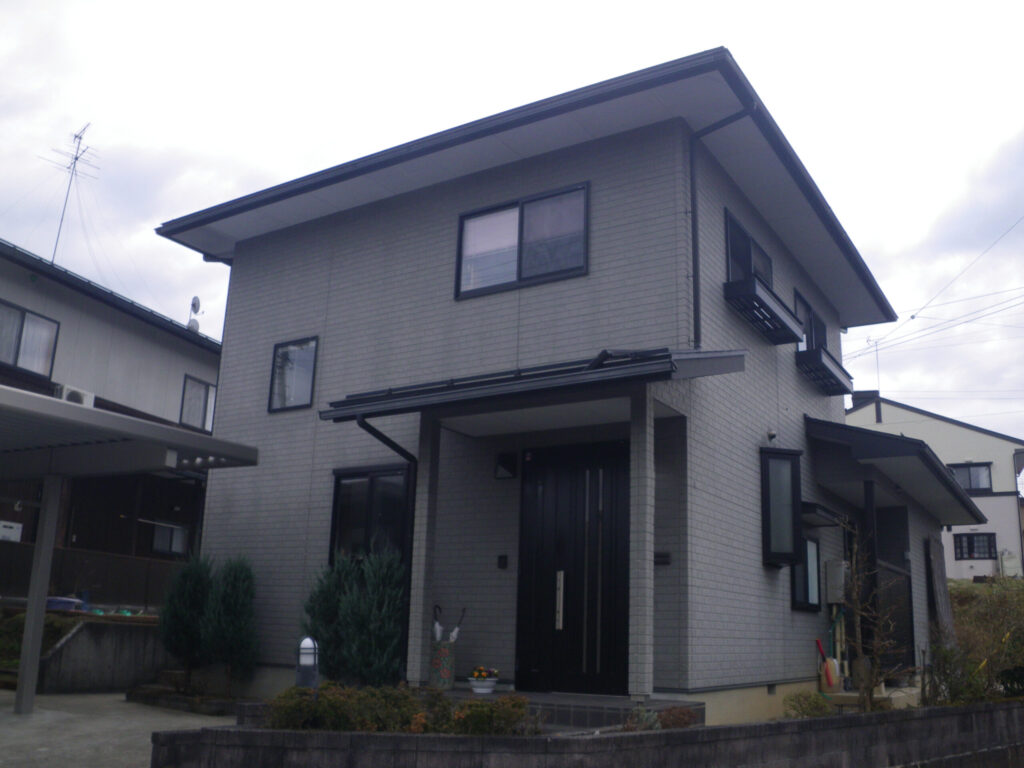 K様邸は築17年のお宅でした。丁寧に住まわれていたため外観もきれいに保たれていましたが、点検してみるとコーキングの縮や割れ、塗料の劣化であるチョーキング現象が確認出来ました。また、雪の重みが原因と思われる雨樋の破損も確認出来ました。コーキングなどの細部もですが、特に屋根まわりなど普段ご自身で確認しづらい所にこそ、リフォームが必要な箇所がある事が多いです。外壁の場合は築10年を目安に、まずはプロに点検を依頼してみる事をおススメいたします!
