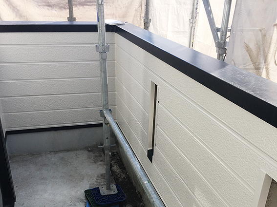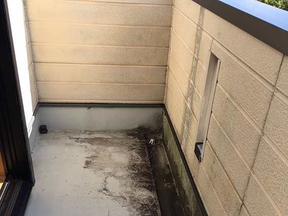 お施主様が特に気になっていたベランダの雨漏りも下地の張替えや集水器の取替えでしっかりと解消し、雨垂れが目立っていた箇所は上から塗装を施しました。今回使用したスーパームキコートは無機成分によって塗膜をつくり表面がツルツルになります。