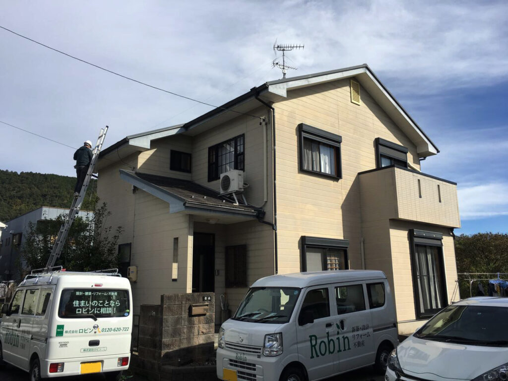 外壁のリフォームをずっと検討されていたが中々実行することができなかったお施主様。ベランダの雨漏りもひどくなってきて本格的にどうにかしたい、と思われていたそうです。そんな中、新聞折込みにロビンチラシが入っていたのをご覧になり岐阜産業会館で開催したリフォームイベントにてご相談を頂きました。